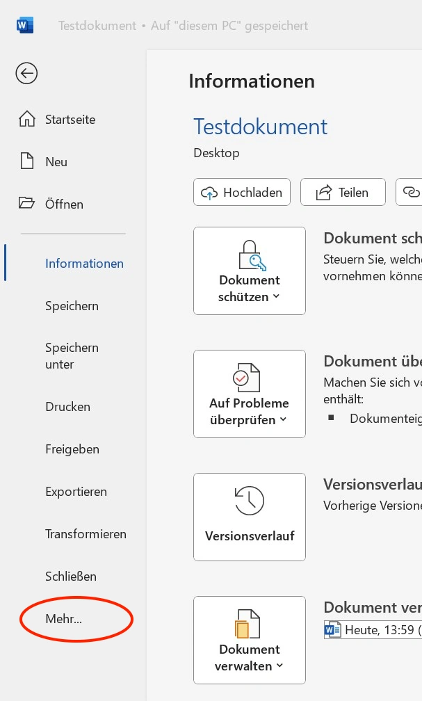 Ab sofort speichert Word automatisch alle **5 Minuten** eine Sicherungskopie des Dokuments.