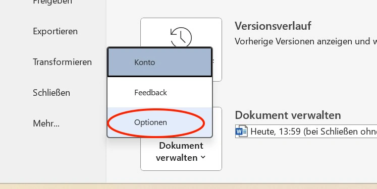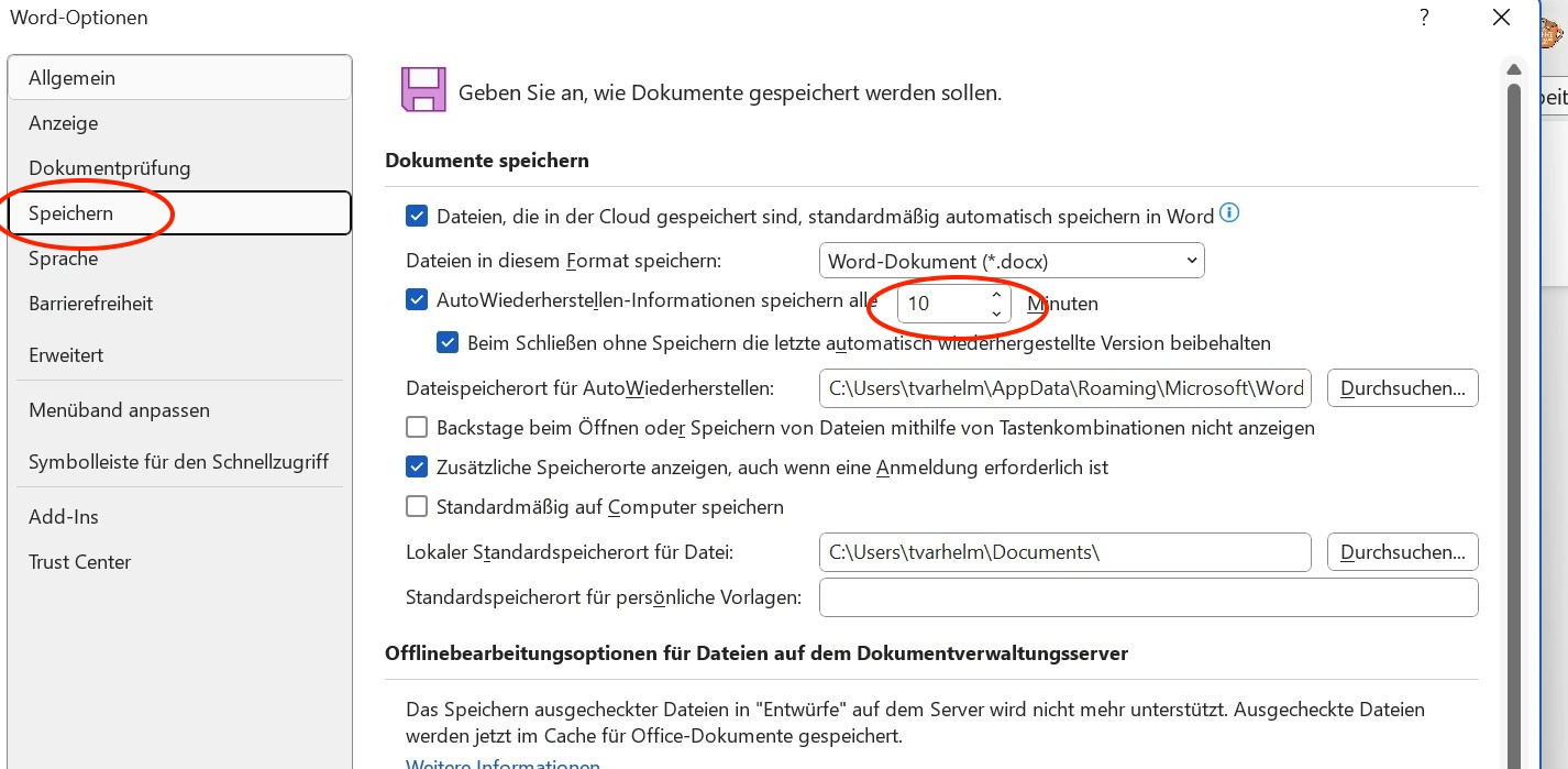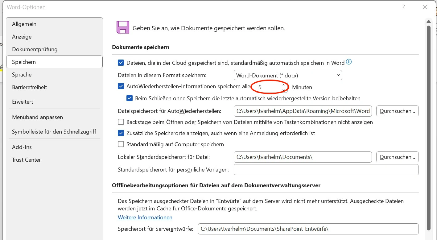 Word: Zeitintervall der automatischen Speicherung ändern.
