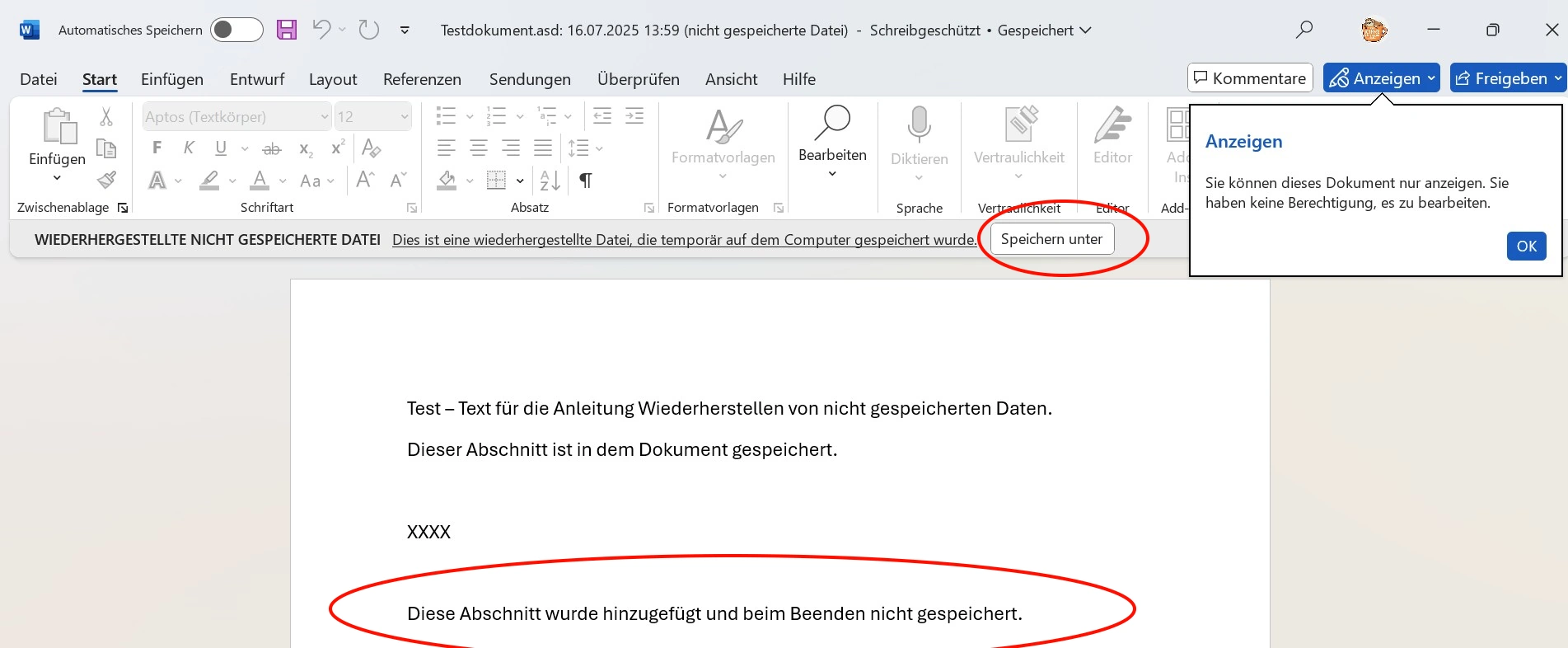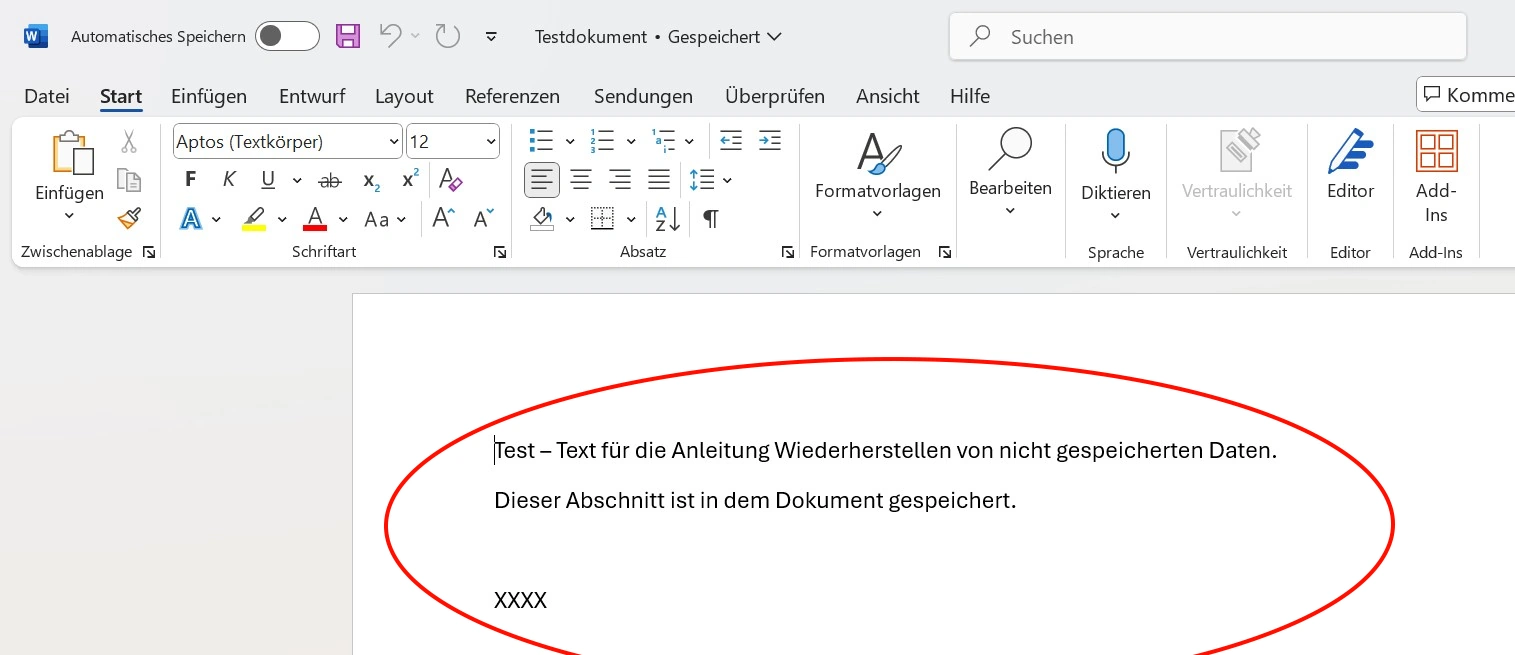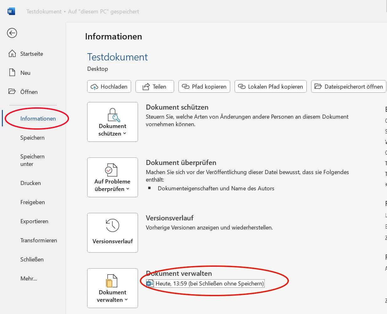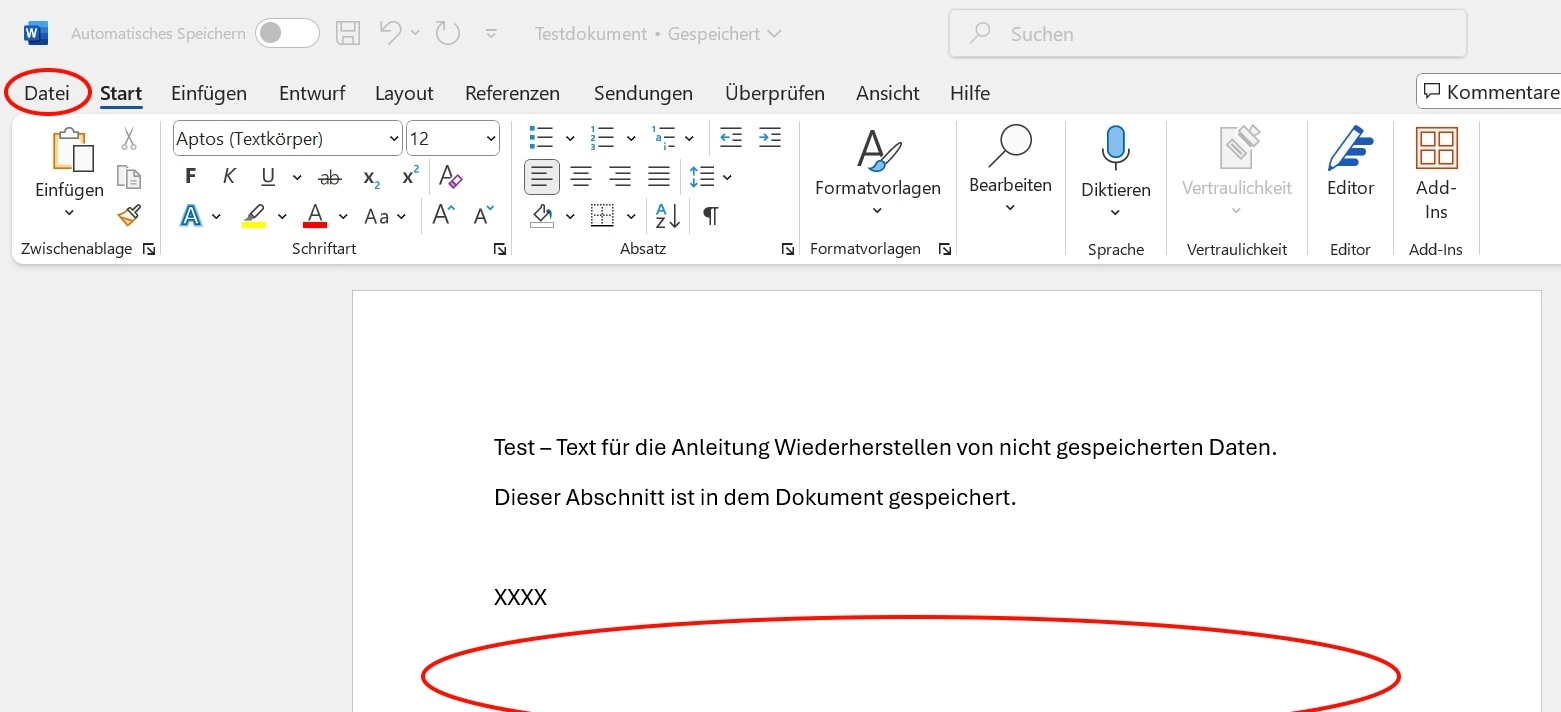 Word: Daten aus automatischer Speicherung wiederherstellen.